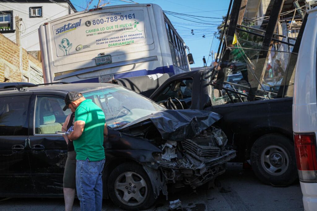 Entre los autos afectados se encuentran dos pickups, una panel, varias camionetas y vehículos compactos. Además, se reportó daño a un poste de alumbrado público, el cual fue derribado tras el impacto.