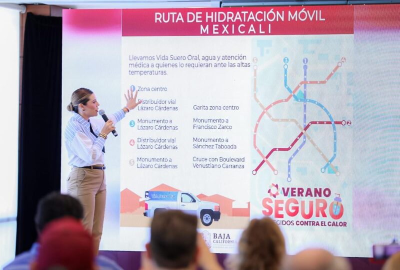 La mandataria señaló que en Mexicali, donde se registran las temperaturas más extremas, se instaló un punto masivo de hidratación abierto las 24 horas; además, se habilitaron más de 300 casas de hidratación oral en comunidades y una ruta de hidratación en zonas estratégicas.