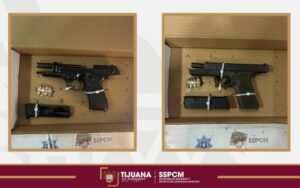 TIJUANA, SEPTIEMBRE 24, 2025.- La Secretaría de Seguridad y Protección Ciudadana Municipal (SSPCM), en un esfuerzo continuo por recuperar la paz y combatir la impunidad, logró la detención de dos personas por portación de arma de fuego en la delegación La Presa, en Tijuana, el 23 de septiembre de 2025.