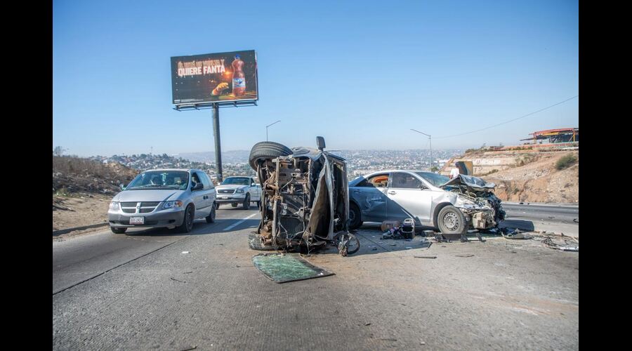 TIJUANA, BAJA CALIFORNIA, SÁBADO 8 DE NOVIEMBRE DE 2025.- Dos personas resultaron lesionadas luego de que una camioneta Chevrolet Tahoe brincara el camellón e invadiera el carril contrario en la vialidad que conecta El Florido con Zona Río, a la altura del Panteón Monte de los Olivos.