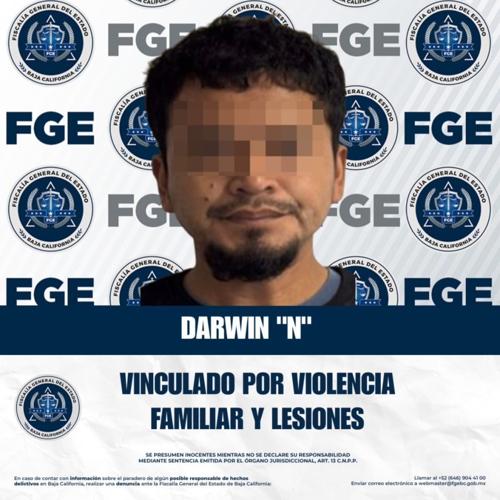 TIJUANA, NOVIEMBRE 13, 2025.- La Fiscalía Regional de Tijuana, a través de la Unidad de Investigación con Detenido, obtuvo la vinculación a proceso en contra de Darwin “N”, por su presunta responsabilidad en los delitos de violencia familiar y lesiones, cometidos en agravio de su concubina.
