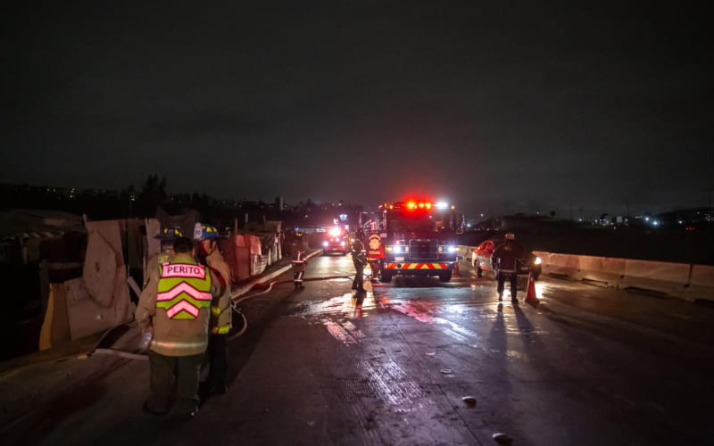 TIJUANA, NOVIEMBRE 7, 2025.- Una casa ubicada en el Cañón del Padre, a un costado de la Vía Rápida Alamar y el bulevar Gato Bronco, quedó completamente consumida por el fuego, junto con una traila contigua, durante la noche de este jueves.