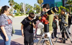 El programa inició desde las 3:00 de la tarde con observaciones solares, donde especialistas del grupo Astrofotógrafos de Baja California mostraron técnicas y equipos utilizados para mirar el sol de forma segura.