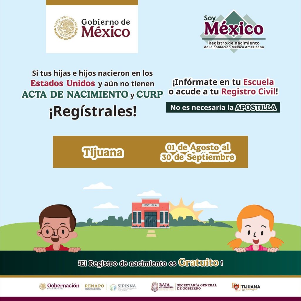 El Gobierno del Estado invita a las familias interesadas a acudir a los módulos de Registro Civil en Tijuana antes del cierre de campaña, el próximo 30 de septiembre, y así asegurar este beneficio.