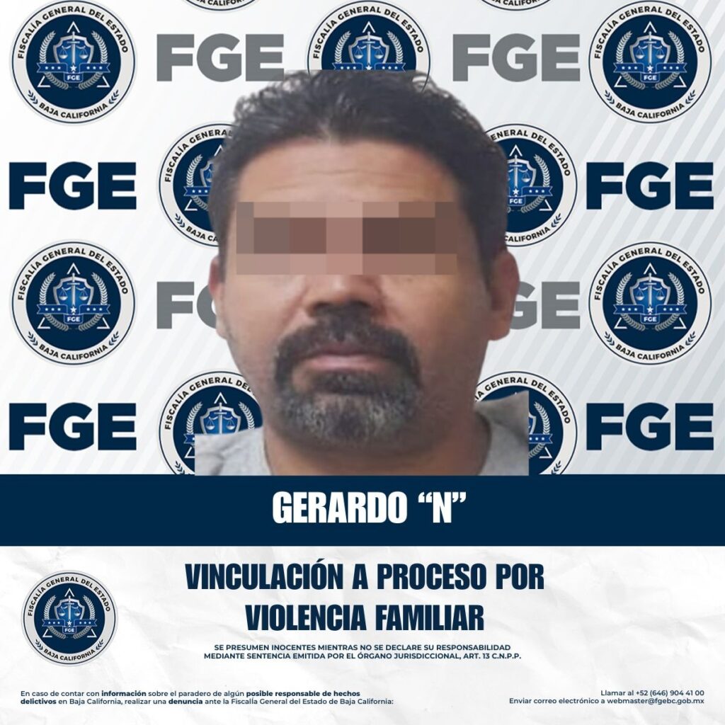 TECATE, FEBRERO 23, 2026 .- La Unidad de Investigación de Delitos con Detenido, adscrita a la Fiscalía Regional de Tecate, obtuvo la vinculación a proceso y la imposición de la medida cautelar de prisión preventiva en contra de Gerardo “N”, al acreditar su probable responsabilidad en el delito de violencia familiar.