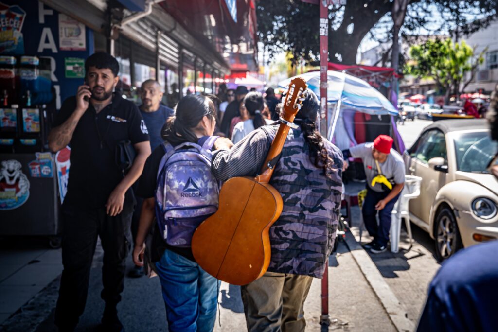 TIJUANA, SEPTIEMBRE 19, 2025.- Omar Rodríguez Escobedo es un artista callejero que, pese a ir perdiendo la vista, no ha dejado de lado su pasión por la música. Cada día sube a los camiones de Tijuana acompañado de su hija para cantar, ganándose algunas monedas con las que mantiene a su familia.