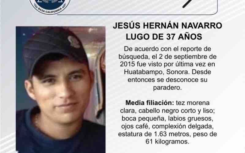 TIJUANA, FEBRERO 25. 2026.-La Fiscalía General del Estado (FGE) solicita el apoyo de la ciudadanía para localizar a Jesús Hernán Navarro Lugo, de 37 años de edad.