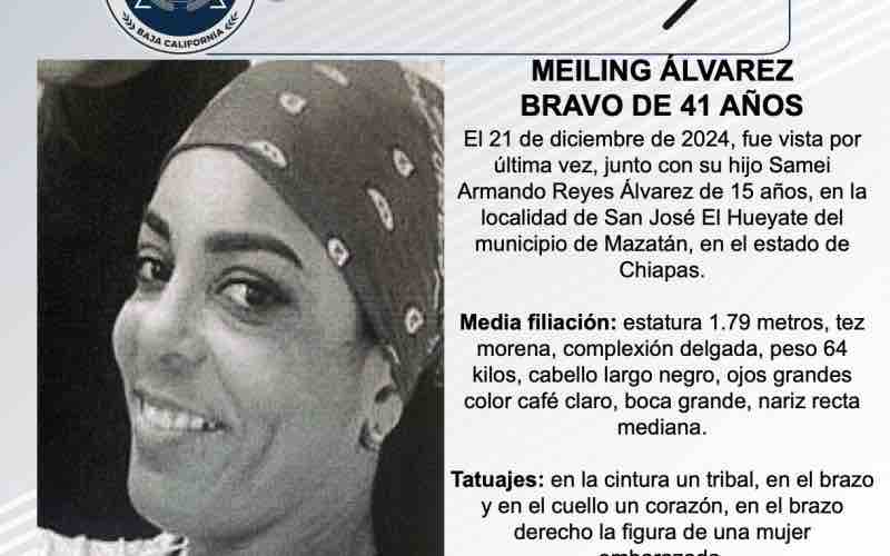 TIJUANA, FEBRERO 05, 2026.-La Fiscalía General del Estado (FGE), solicita el apoyo de la ciudadanía para localizar a Meiling Álvarez Bravo de 41 años de edad.