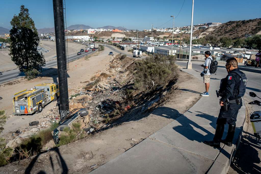 TIJUANA, SEPTIEMBRE 19, 2025.-Un hombre resultó lesionado tras volcar el vehículo que conducía sobre la Vía Rápida Alamar, en dirección hacia el bulevar Héctor Terán Terán.