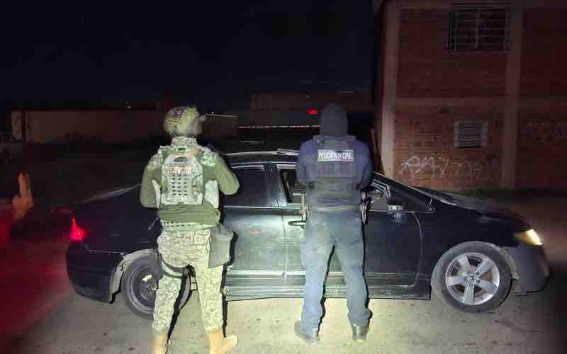 Al intervenir, los oficiales observaron que el vehículo se encontraba encendido y sin conductor. Al realizar una inspección preventiva en su interior, se localizó en el área del portavasos un arma de fuego tipo pistola, con un cargador abastecido. Asimismo, sobre el asiento trasero se encontró un arma de fuego tipo escopeta, abastecida con cuatro cartuchos útiles.