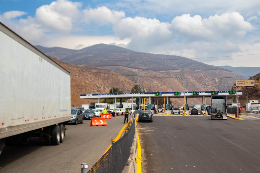 TIJUANA, SEPTIEMBRE 18, 2025.- Padres de familia de la Telesecundaria #117, ubicada en la colonia Lomas del Encinal, bloquearon este jueves por varios minutos la salida de la caseta de cuota Tijuana-Tecate, conocida como la caseta del Cimarrón, en protesta por la falta de servicios básicos en la escuela.
